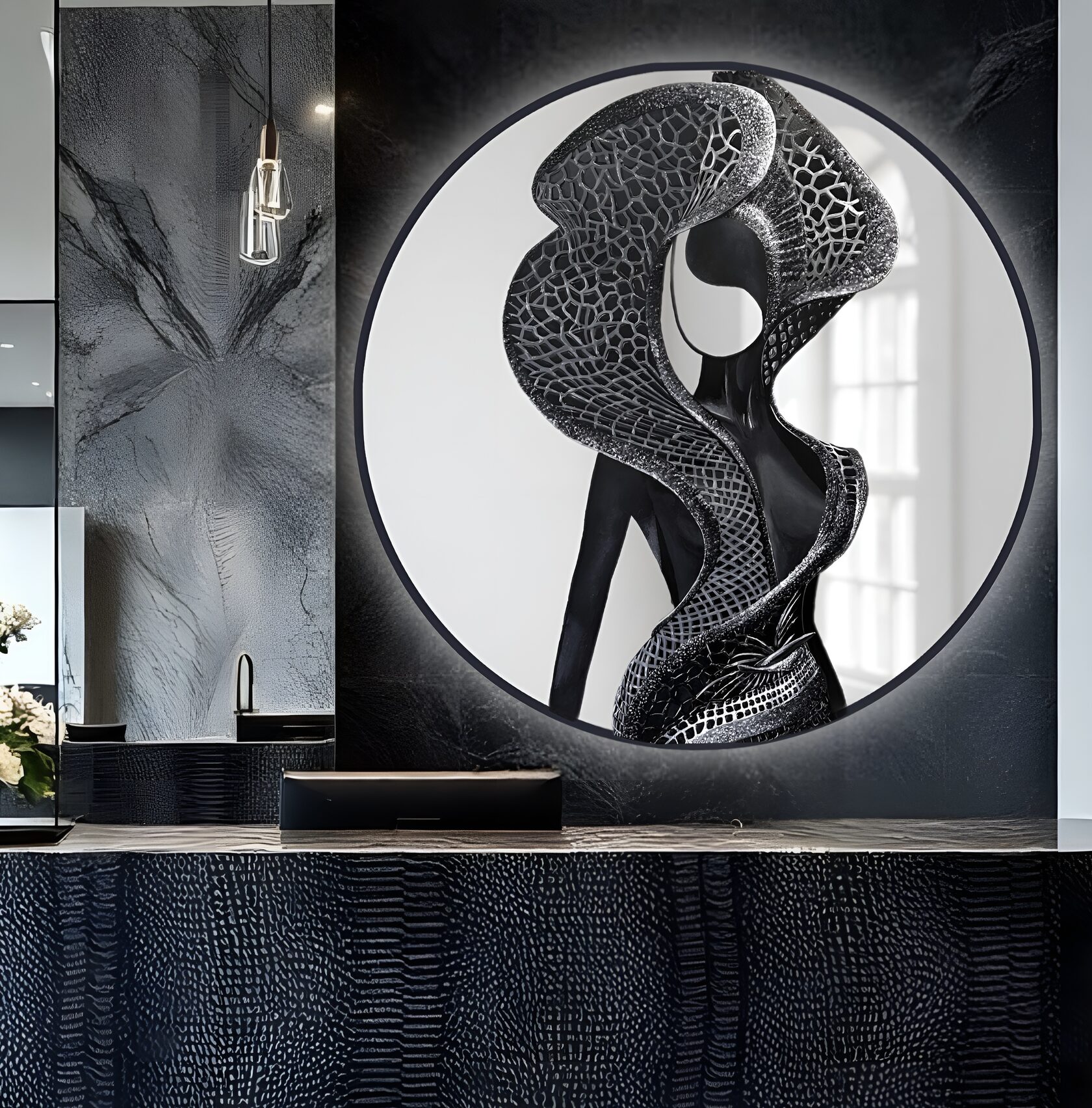 Я создаю картины, панно и арт-объекты, которые становятся не просто украшением интерьера, а его смысловым акцентом. Чёрный и белый — честные цвета, они позволяют убрать лишнее и показать суть. А зеркало всегда оставляет место зрителю — в нём отражается не только пространство, но и человек, который рядом.